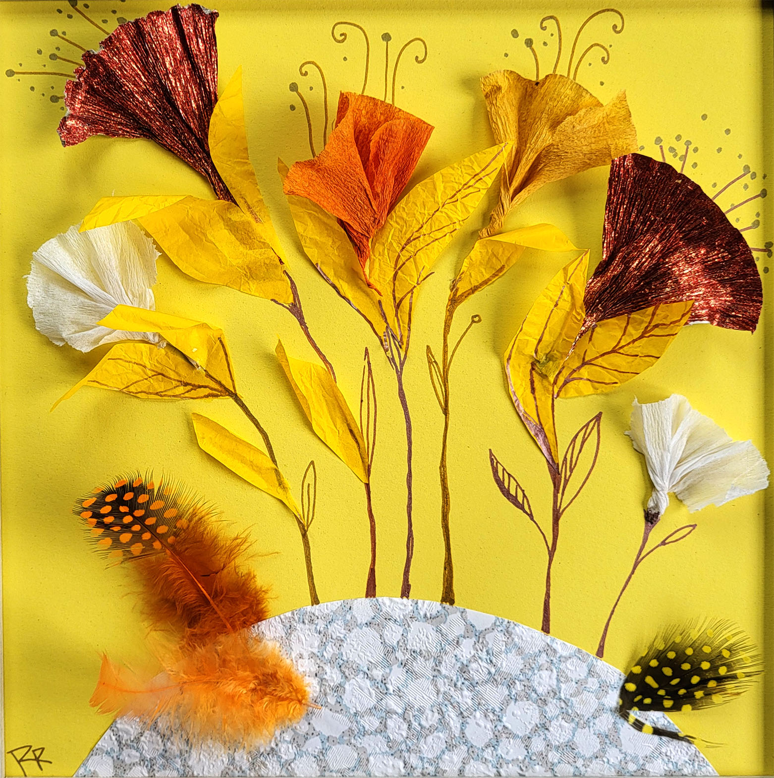 Collage / Papiere, Feder, Bleistift, Filzstift, 29×29 cm